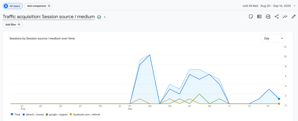 This project highlights my ability to not only design and optimize websites but also to track, analyze, and interpret performance data using Google Analytics. The results show that SEO optimizations successfully drove the majority of traffic from organic search, while social media, though smaller in volume, delivered highly engaged visitors. Direct traffic, on the other hand, revealed opportunities to improve branding and user retention.